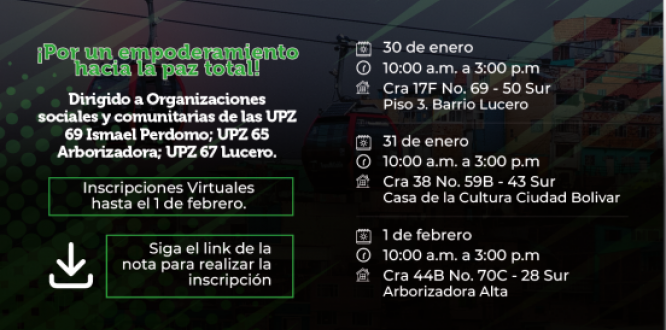 DIRIGIDO A ORGANIZACIONES SOCIALES Y COMUNITARIAS DE LAS UPZ 69 ISMAEL PERDOMO; UPZ 65 ARBORIZADORA; UPZ 67 LUCERO.