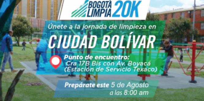 La Alcaldía Local de Ciudad Bolívar se une a la celebración del cumpleaños 479 de Bogotá con la jornada “Bogotá Limpia 20K”, que se realizará este sábado 5 de agosto.