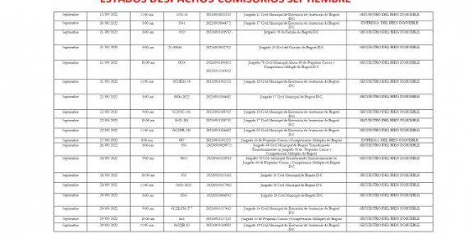 01-09-20223  La Alcaldía Local de Ciudad Bolívar informa a la ciudadanía la programación de diligencias de Despachos Comisorios programados para el mes de Septiemnre del 2022.